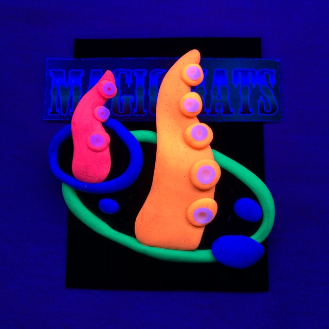 【商品説明】 ブローチ 素材…fimo サイズ…5㎝×6㎝ ブラックライトに反応して光ります☆ サイケでポップ!なんともゆる〜いシルエットが可愛いブローチです。 fimoと言う粘土を使用したハンドメイドによる商品です、指紋の跡やボンドなどが付着している場合があります。 踏んだり落としたり体重をかけるなどの強い衝撃は破損の原因となります。 #fimo #オーブン粘土 #ハンドメイド #ブローチ #サイケ #サイケデリック #蛍光色 #psychedelic #clyart #ネオンカラー