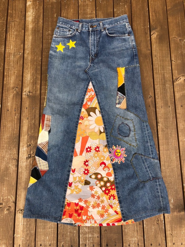 サイドパッチワークリメイクパンツ (サイケデリック サイケ ハンドメイド psychedelic ベルボトム フレアパンツ 古着 )