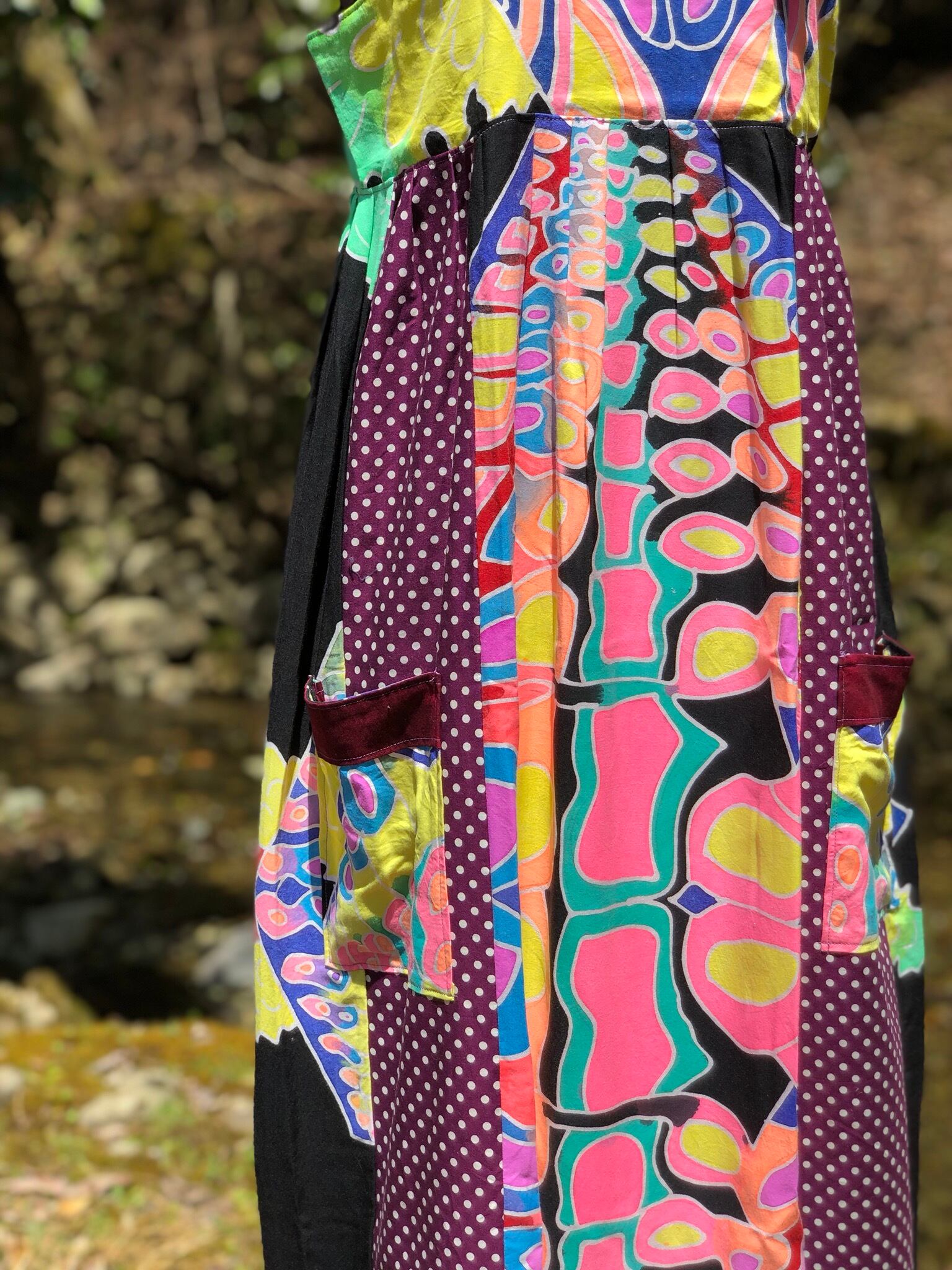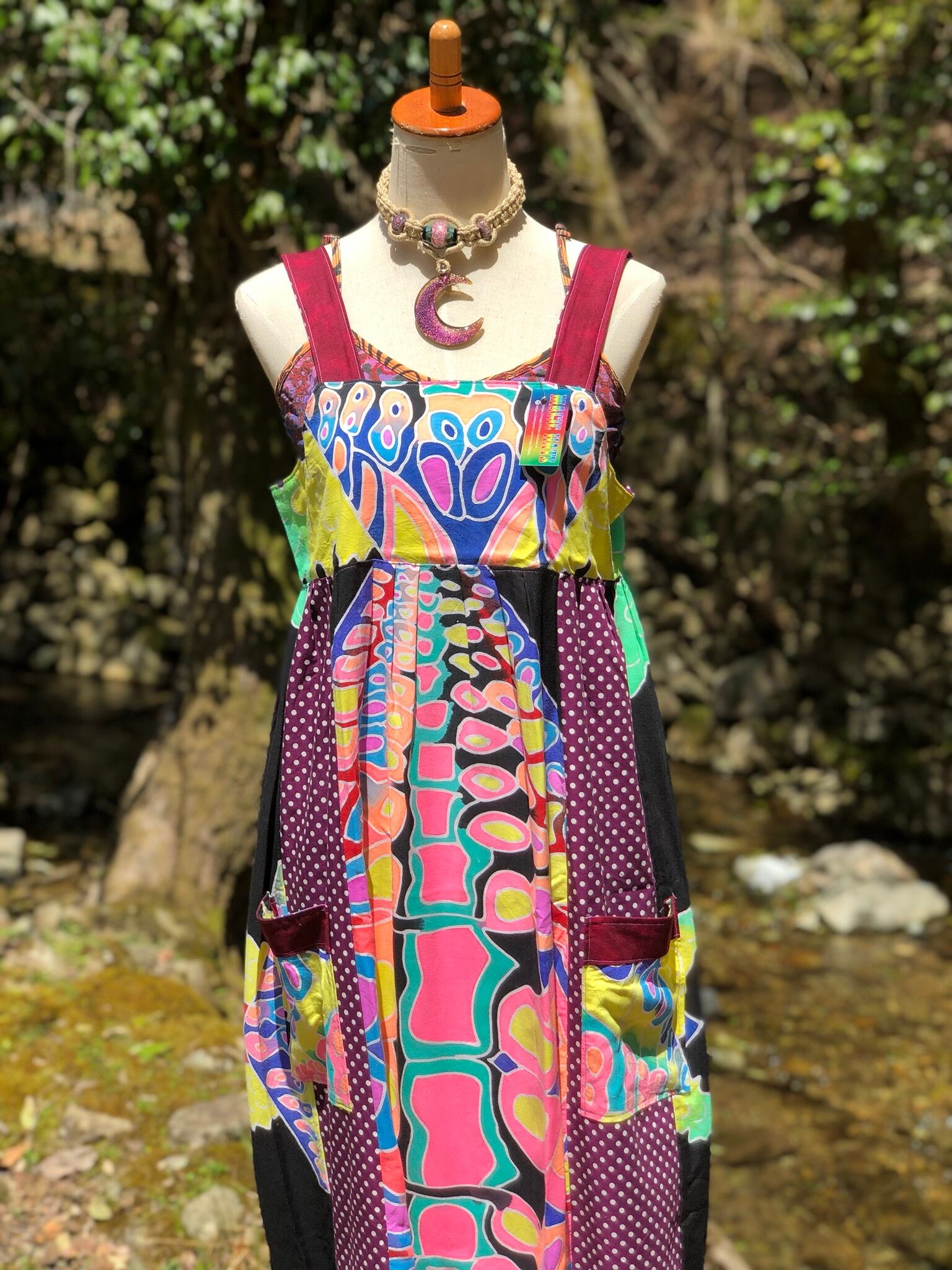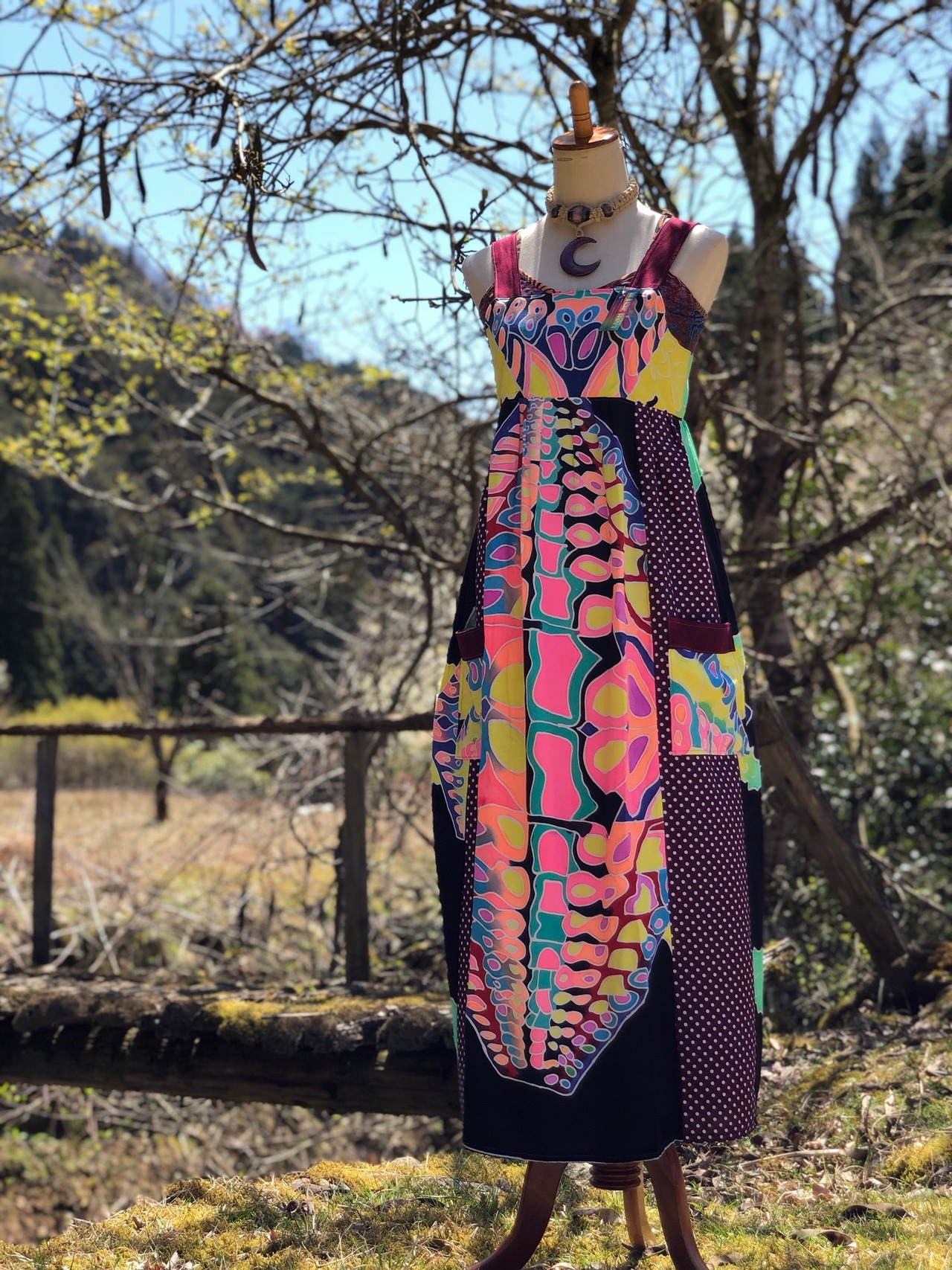 フェス レイブ サイケ サイケデリック psychedelic ワンピース ロングワンピ ロングワンピース マキシ丈 ハンドメイド HANDMADE 一点物 ヒッピー ヒッピーワンピ ネオンカラー クラブ