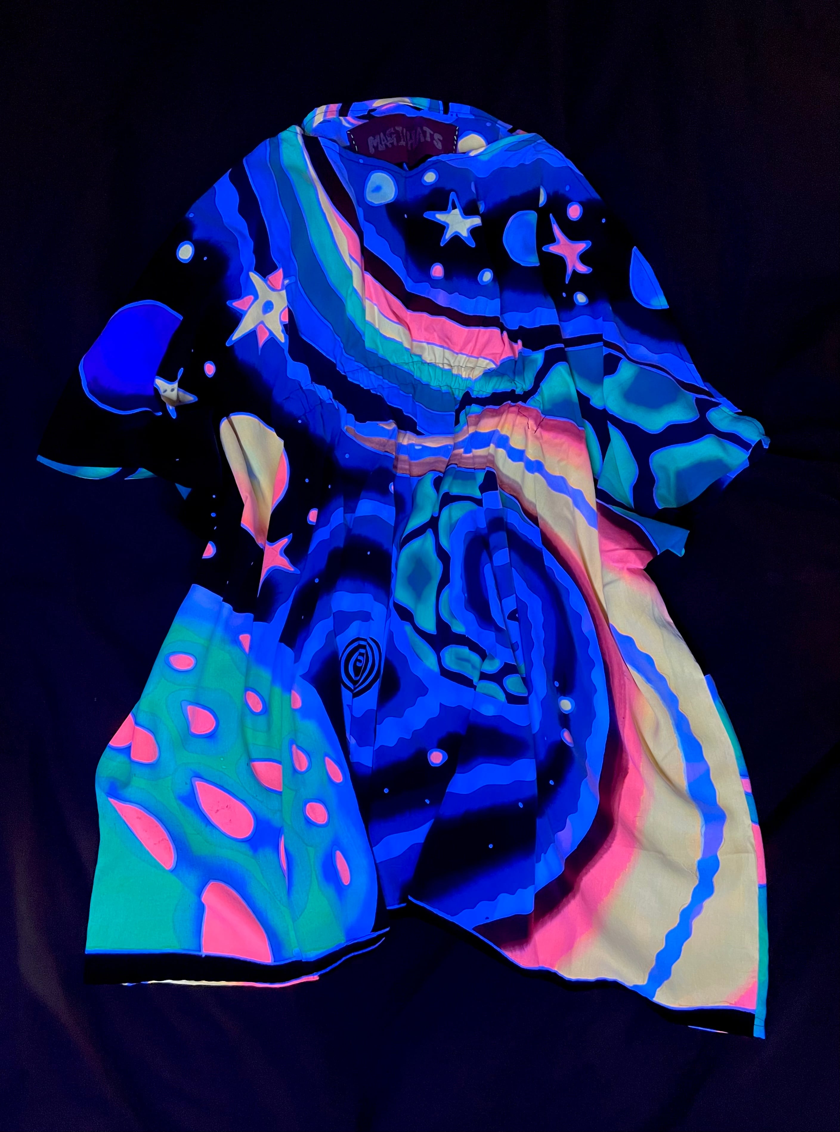 夜や暗い場所でブラックライトで照らすと、柄が浮かびあがって幻想的な雰囲気です。
