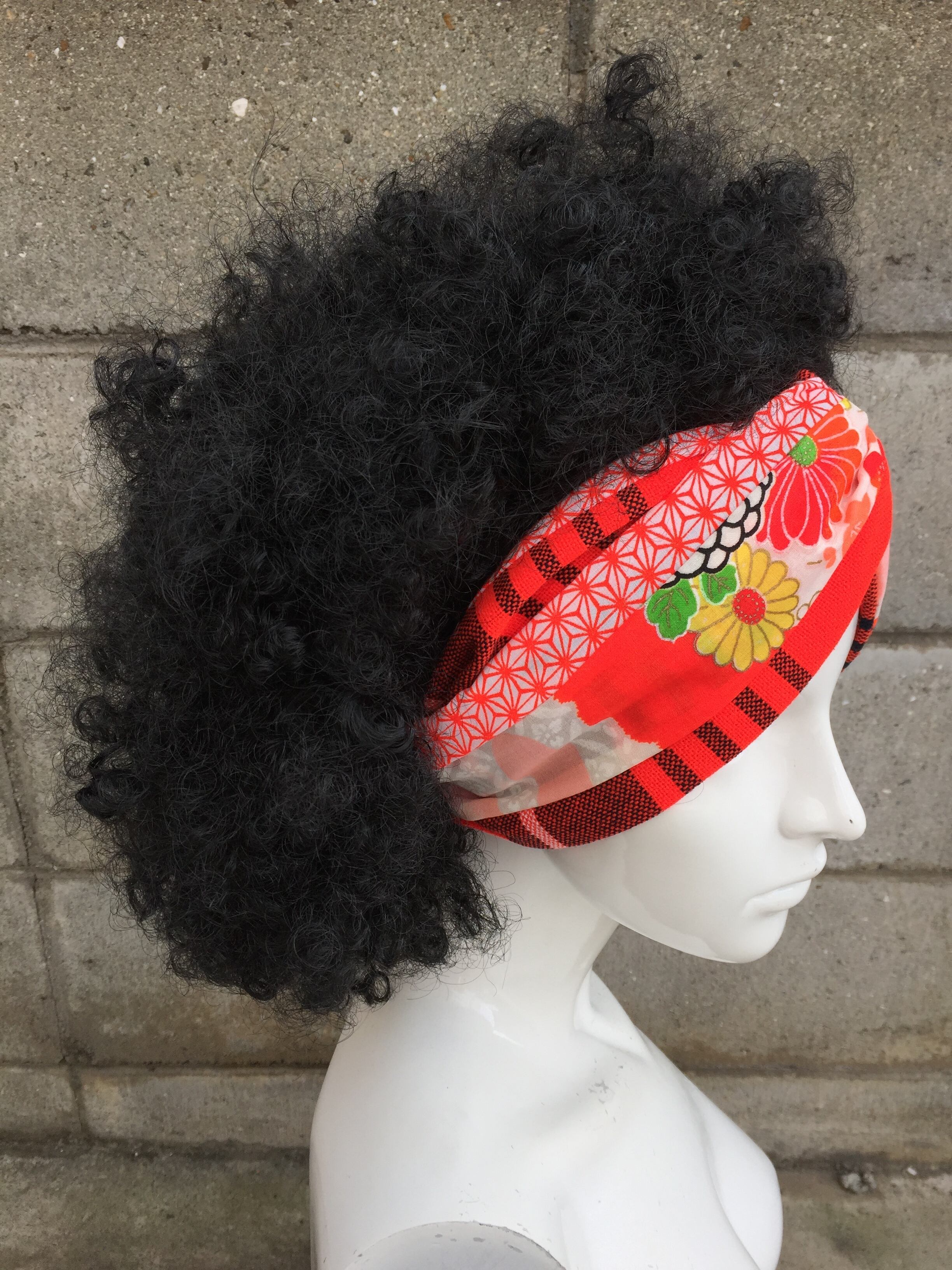 着物や昭和時代の生地を使ったハンドメイドのヘアバンドです。前がクロスになっているターバン型、後ろはゴムになっていてフリーサイズです。